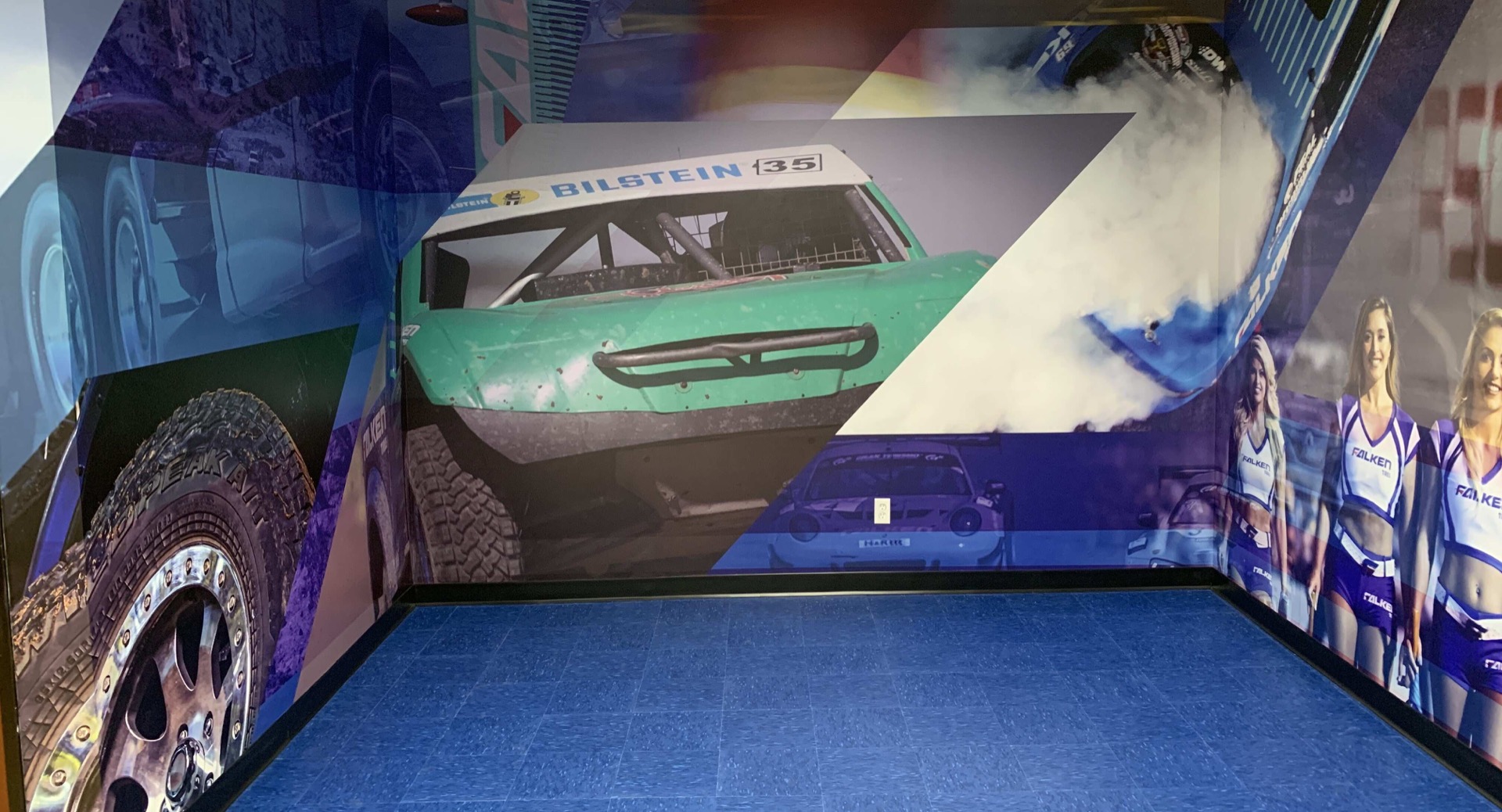 A blank wall is a missed opportunity. We've transformed corporate offices with full-wall athlete murals, wrapped Bilstein's motorsport stairwell with immersive automotive imagery, and installed custom patterned wallpaper for tech company break rooms. Our wall graphics use repositionable adhesive vinyl for commercial leases (clean removal, no damage) or permanent laminated vinyl for spaces you own.