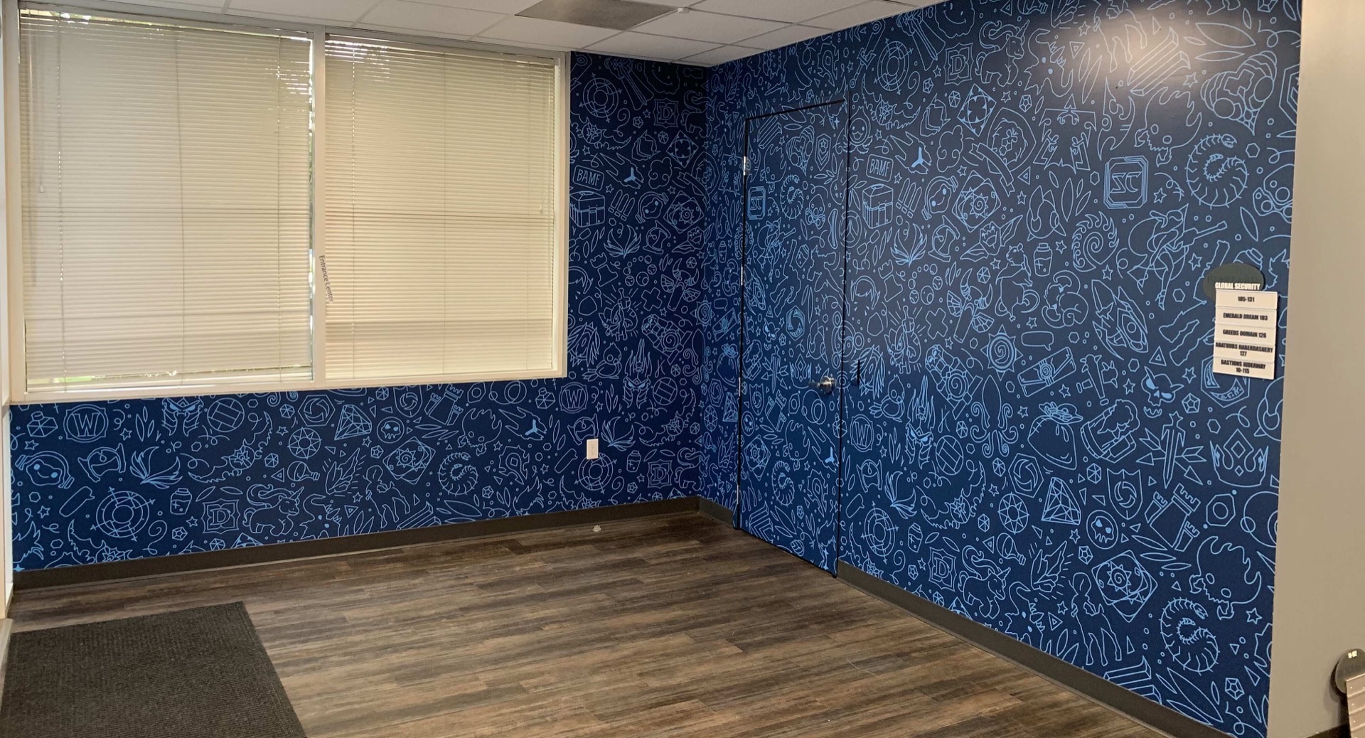 Wall graphics fail when the measurement is off by half an inch — panels misalign at seams, patterns don't wrap corners cleanly, and outlets get covered. Our crew surveys the space, accounts for every outlet, switch plate, and corner radius, then fabricates panels with overlap margins for seamless alignment. We handle everything from drywall prep to final installation, typically completing a full office suite in 1-2 days.