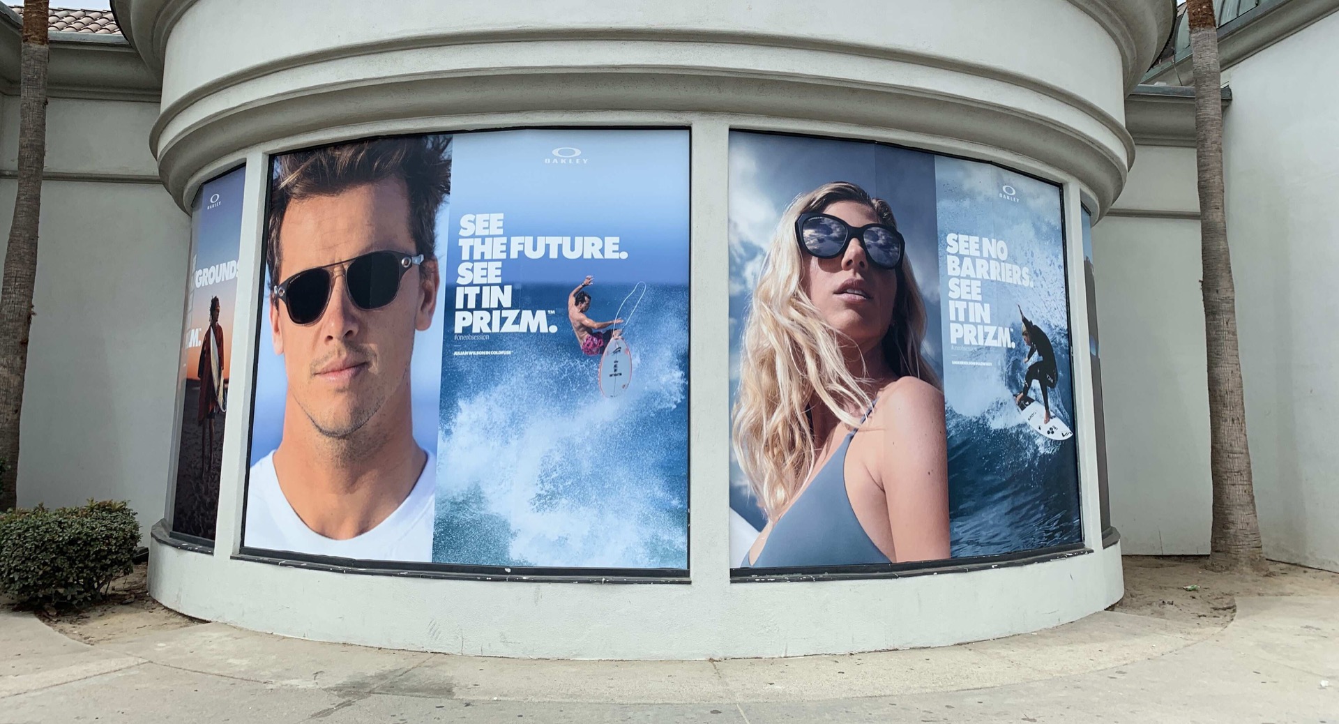 Glass is your most visible surface — and most underused. We've installed frosted privacy film for Pandora Marketing's conference rooms, perforated vinyl for Skechers storefronts (see-out but brand-covered from outside), and full Oakley Prizm campaign wraps on curved retail windows. Each project uses 3M or Avery Dennison films rated for 5+ years of UV exposure, and our certified installers ensure zero bubbles, zero alignment drift.